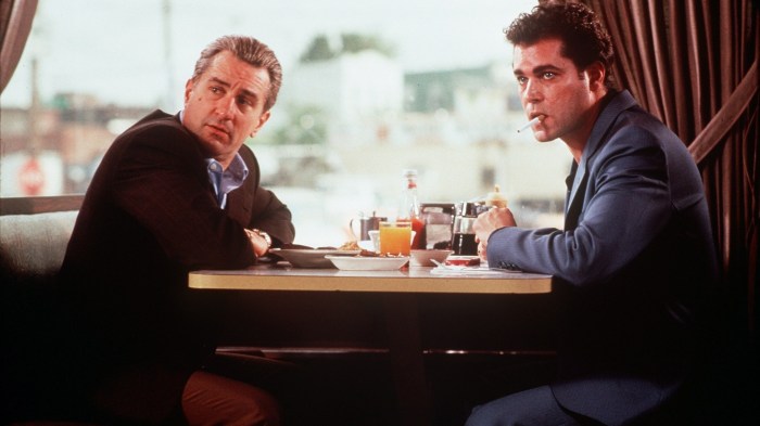 Martin Scorsese’s 1990 Goodfellas stars Robert de Niro, Ray Liotta, Joe Pesci, Lorraine Bracco, Paul Sorvino, telling the story of the rise and fall of mob associate Henry Hill, his friends and his family over a twenty-five year period between 1955 and 1980.